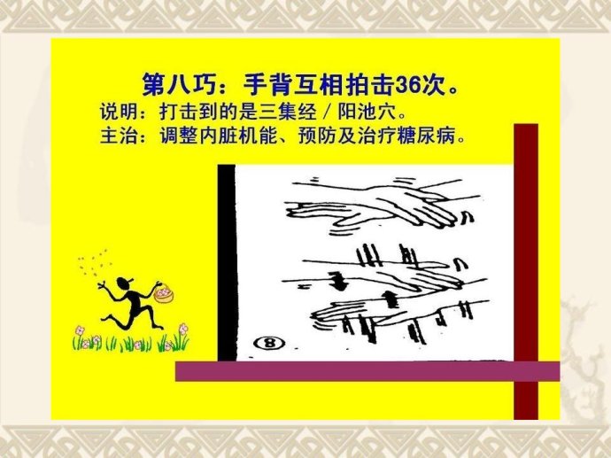 糖尿病:捏左手拇指的两个关节。
