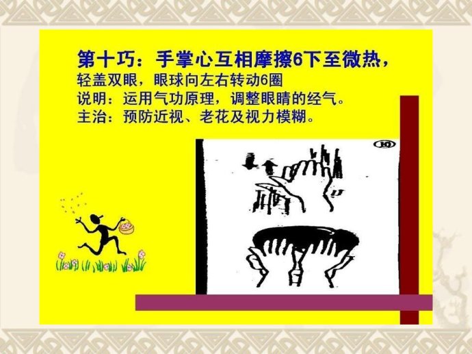 眼睛疲劳:捏右手中指的三个关节。
